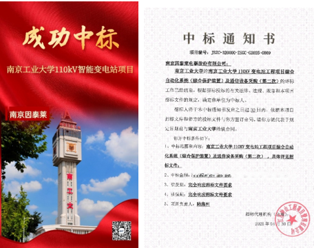喜報丨南京因泰萊成功中標南京工業(yè)大學110kV智能變電站項目