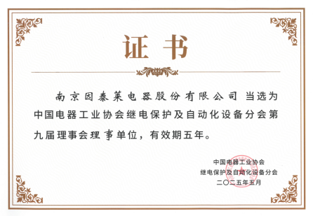 南京因泰萊當選為中國電器工業(yè)協(xié)會繼電保護及自動化設(shè)備分會第九屆理事會理事單位